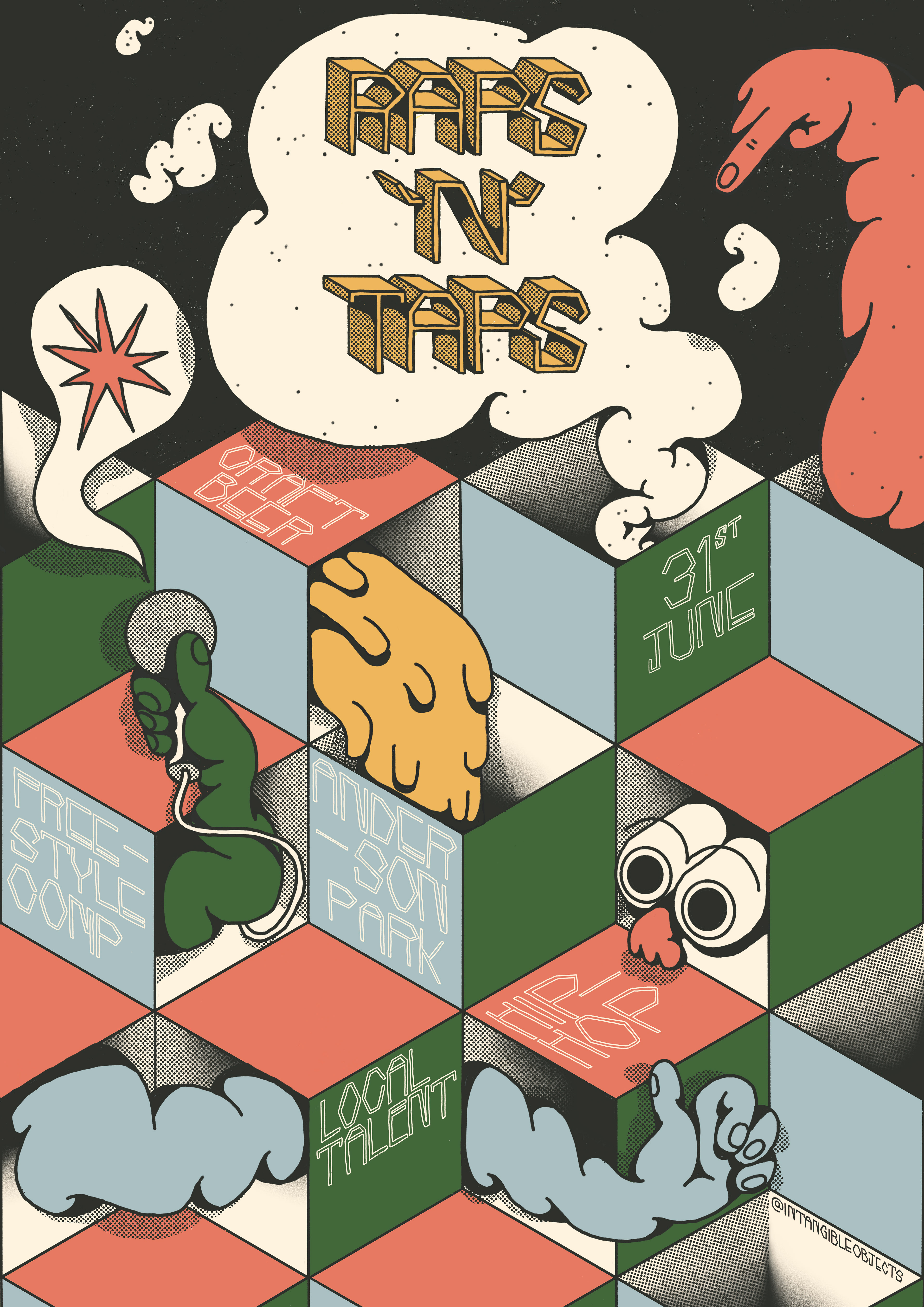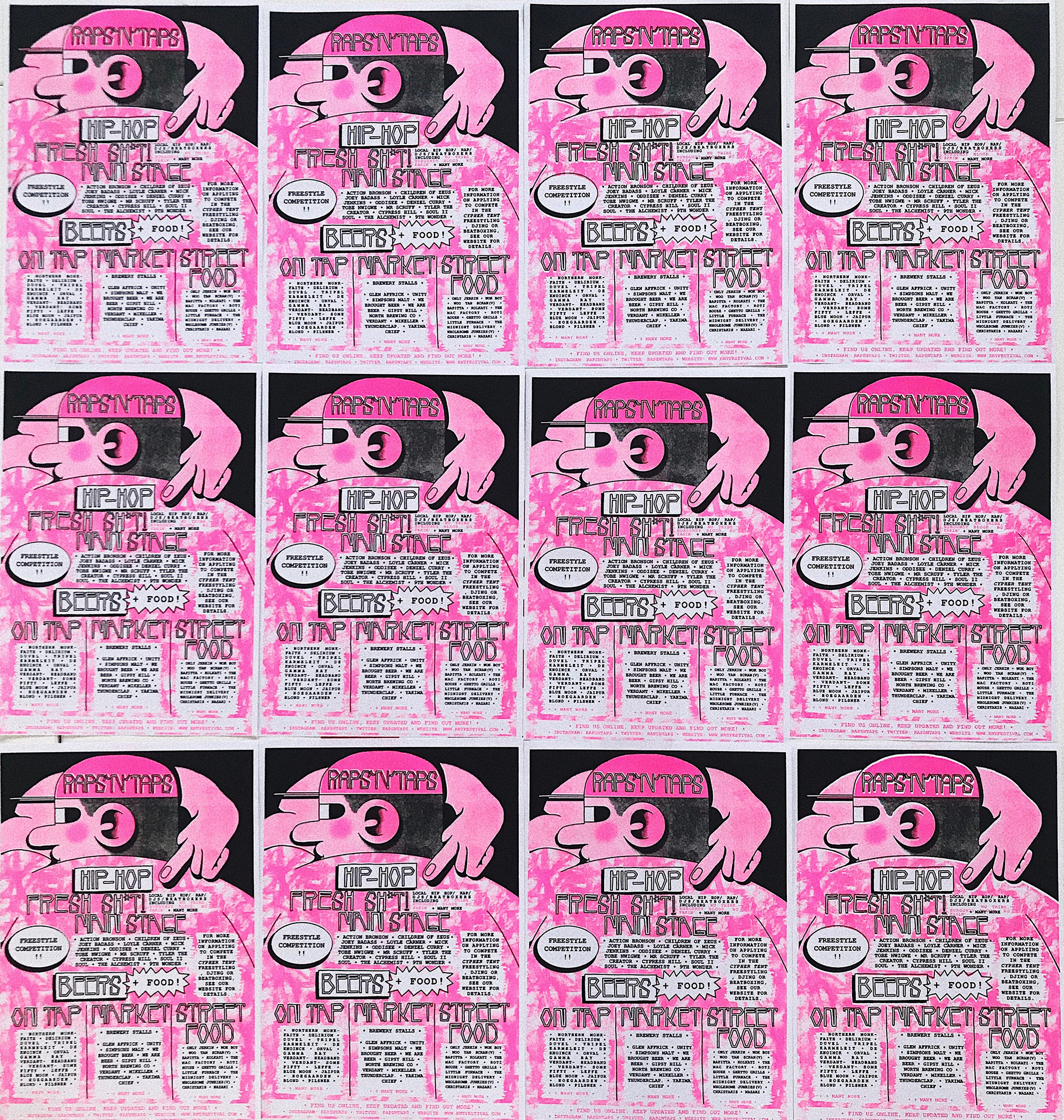 Raps 'N' Taps was a branding based personal project for a fake craft beer and Hip Hop festival I imagined, for which I created a range of merchandise, styling, imagery and overall mood for this festival.